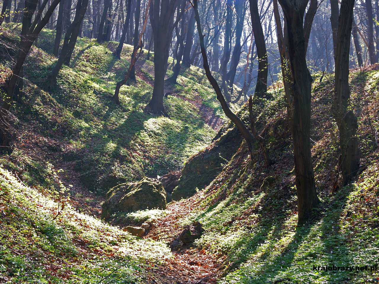 Wiosenne krajobrazy - dolinki podkrakowskie wiosną, pola rzepaku, kwieciste łąki, leśne polany, sady i kwitnące drzewa.
